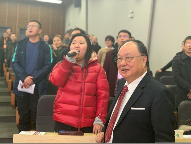 黄天中博士带领代表齐唱《我爱你,中国》