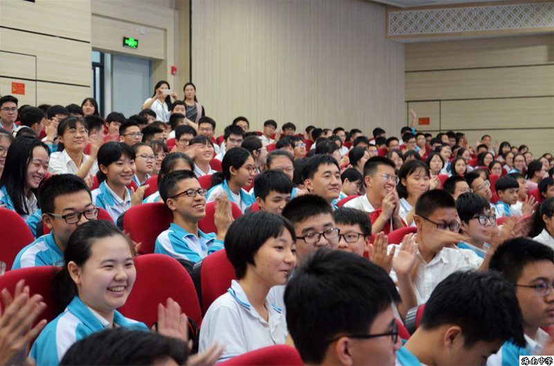 黄教授说,“自我”与“外部世界”之间的关系共分为三个层次。首先是“家庭”,一个人首先要爱父母,才能去爱他人;其次是学校,中学生应当“以校为家”;最后是“中国”,当代中学生必须要具有家国情怀和全球视野。黄教授慷慨激昂的演讲时时激起同学们经久不息的掌声。