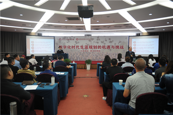 5月27日,中国华侨大学校董、美国乔治亚州托马斯大学、纽约州库克大学中国总校区校长、生涯管理学教授黄天中博士远道而来,以“数字化时代生涯规划的机遇与挑战”为题,为同学们讲授精彩的生涯规划课。近150位MBA、EMBA学员聆听报告,学院赵西萍副院长、孙朝副院长全程参加。