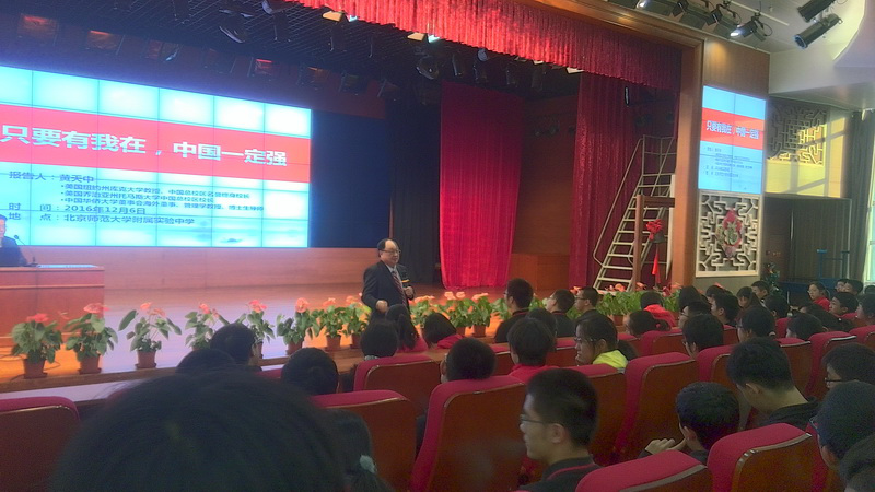3月 25日上午,以黄天中教授为首的生涯教育专家团队应我校学生发展指导中心邀请,到我校对生涯骨干教师进行“体验式生涯教育”相关内容的培训,并为高一年级同学举办专题讲座,受到师生们的热烈欢迎。 黄天中教授是中国华侨大学董事会董事、博士生导师,美国库克大学教授、终身校长,在心理学和生涯教育领域建树颇深。